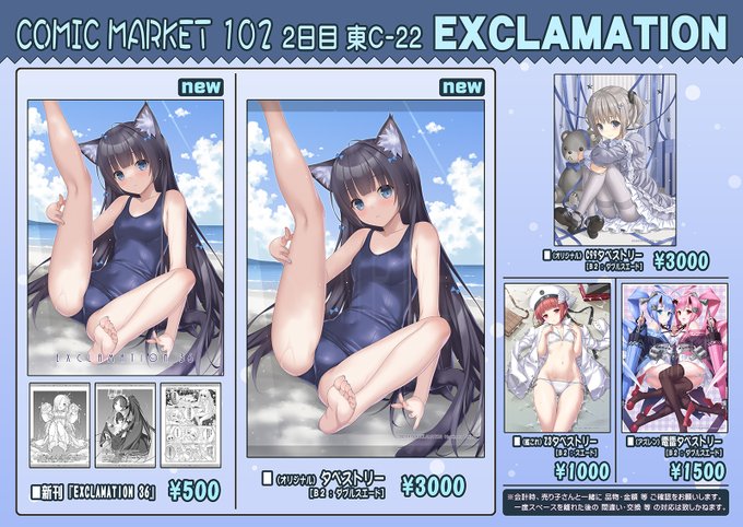 コミックマーケット102 お品書き | 橋本タカシ #pixiv pixiv.net/artworks/11066… C102情報 8/13(日曜日) 東C-22ab EXCLAMATION / QUESTION お品書きになります! #C102 新刊は、後日メロン様に委託予定です。 どうぞよろしくです m(_ _)m