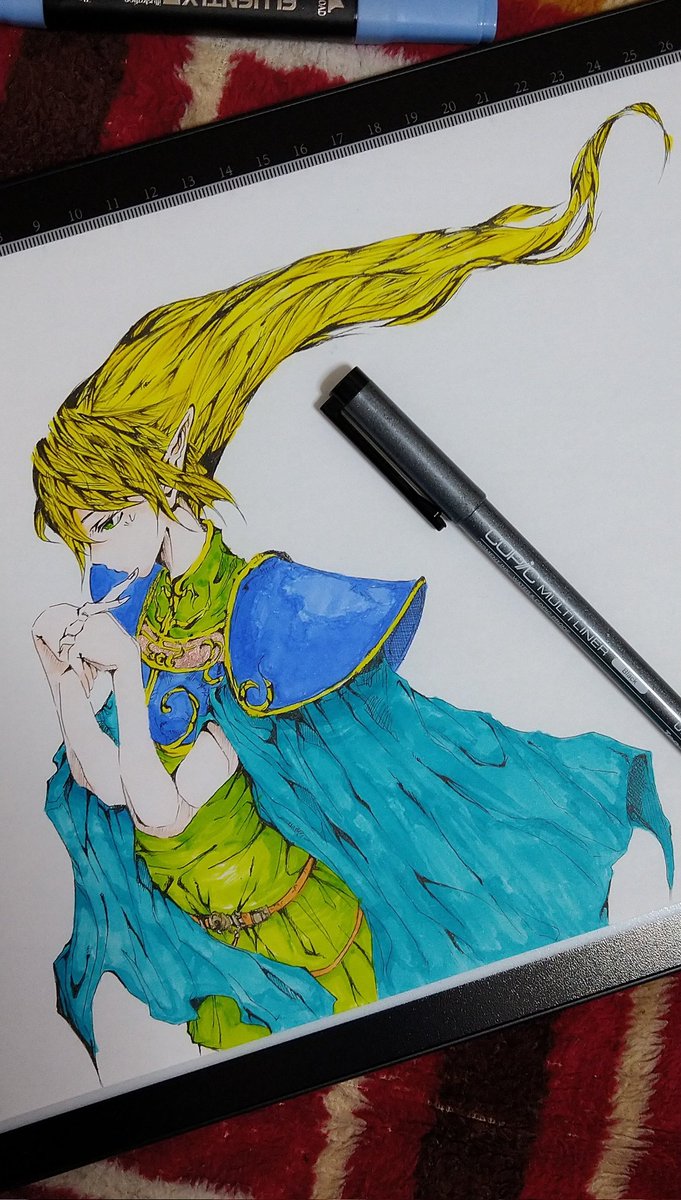 #絵描きさんと繋がたい #イラスト #コピックイラスト ロードス島戦記のディードリット 初めてアナログで塗ってみました。 画材は、線画はコピックマルチライナー、色は100均のペンです😄 twitter.com/exekXEyEGB8jVf…