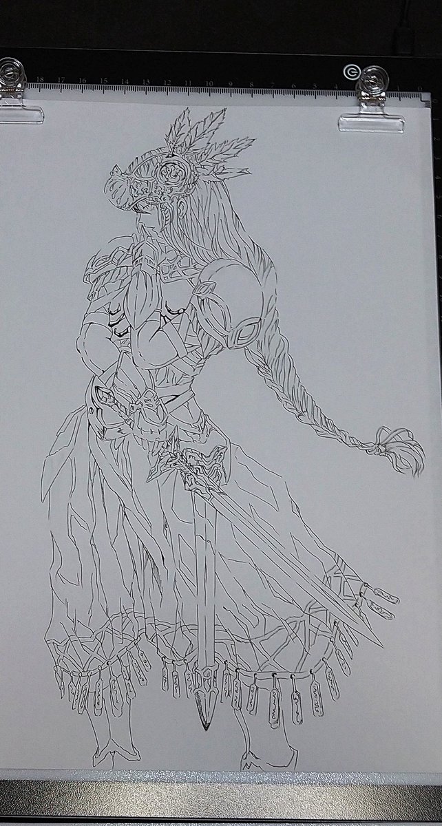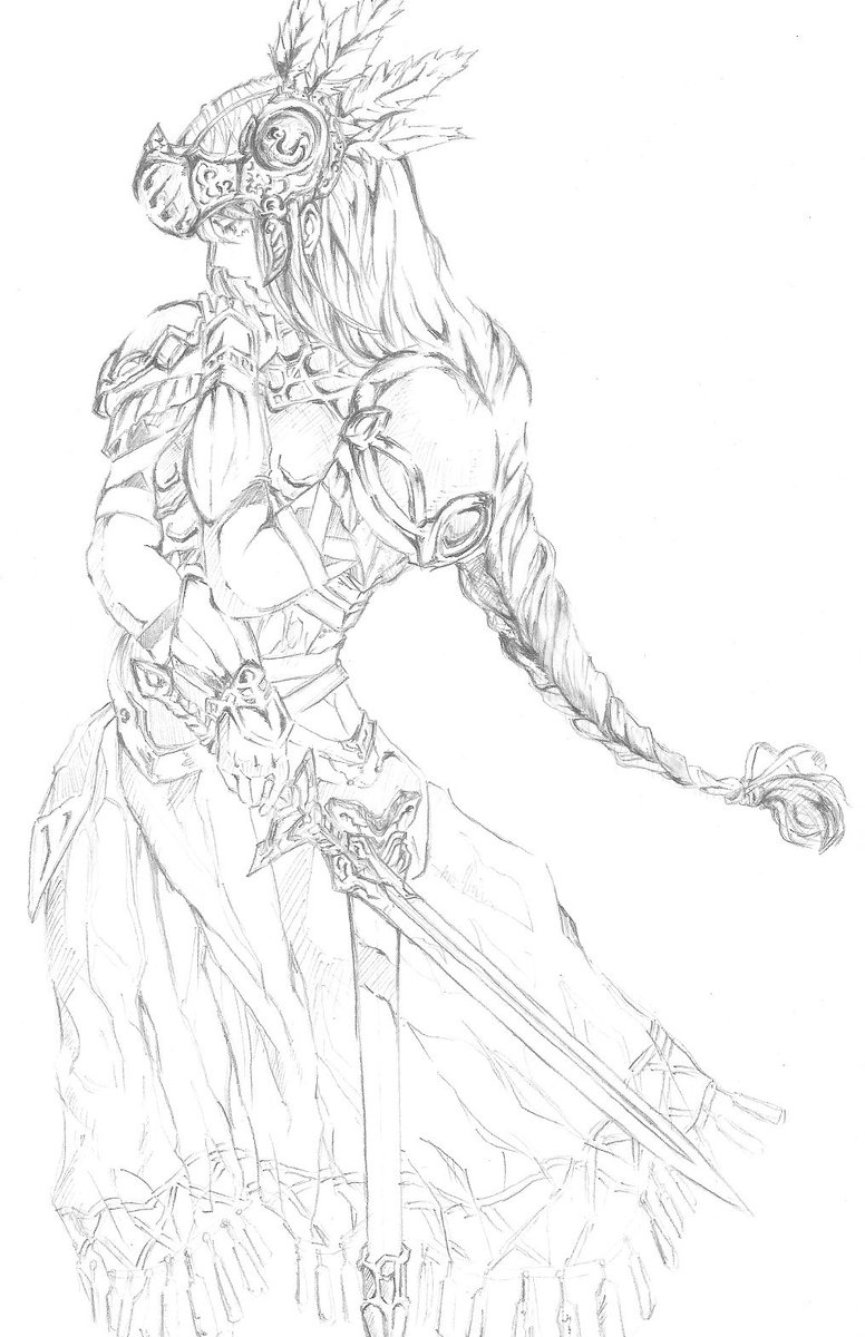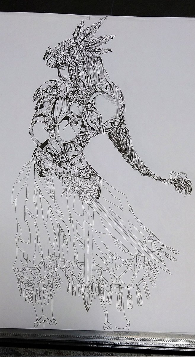 #イラスト #ガンプラ 線画でヴァルキリープロファイルのレナス・ヴァルキュリア 線を描き込んでいくのが好き。 1枚目:シャーペンで模写 2枚目:ペン入れ 3枚目:描き込み 4枚目:完成✨ これがガンプラの筋彫りに現れてるんだと思う😄 twitter.com/exekXEyEGB8jVf…