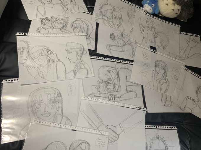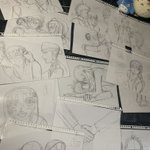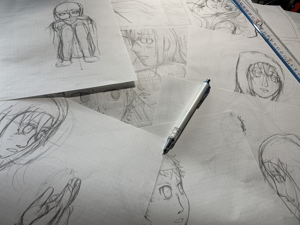 #今月描いた絵を晒そう 創作中の漫画の下書きばっかり😅 2作同時並行に作っており、1つは5/12投稿目標(全4ページ)、他は未定