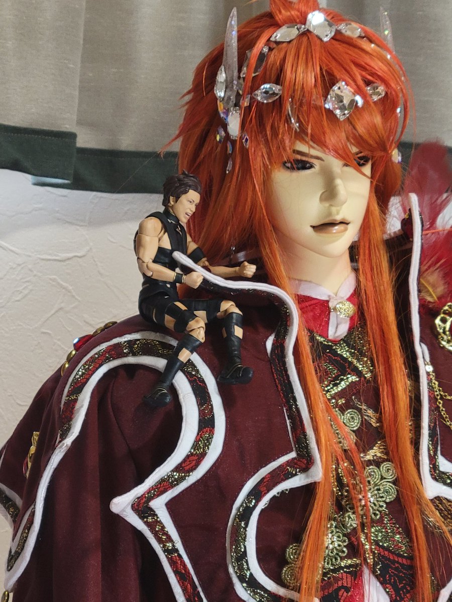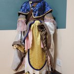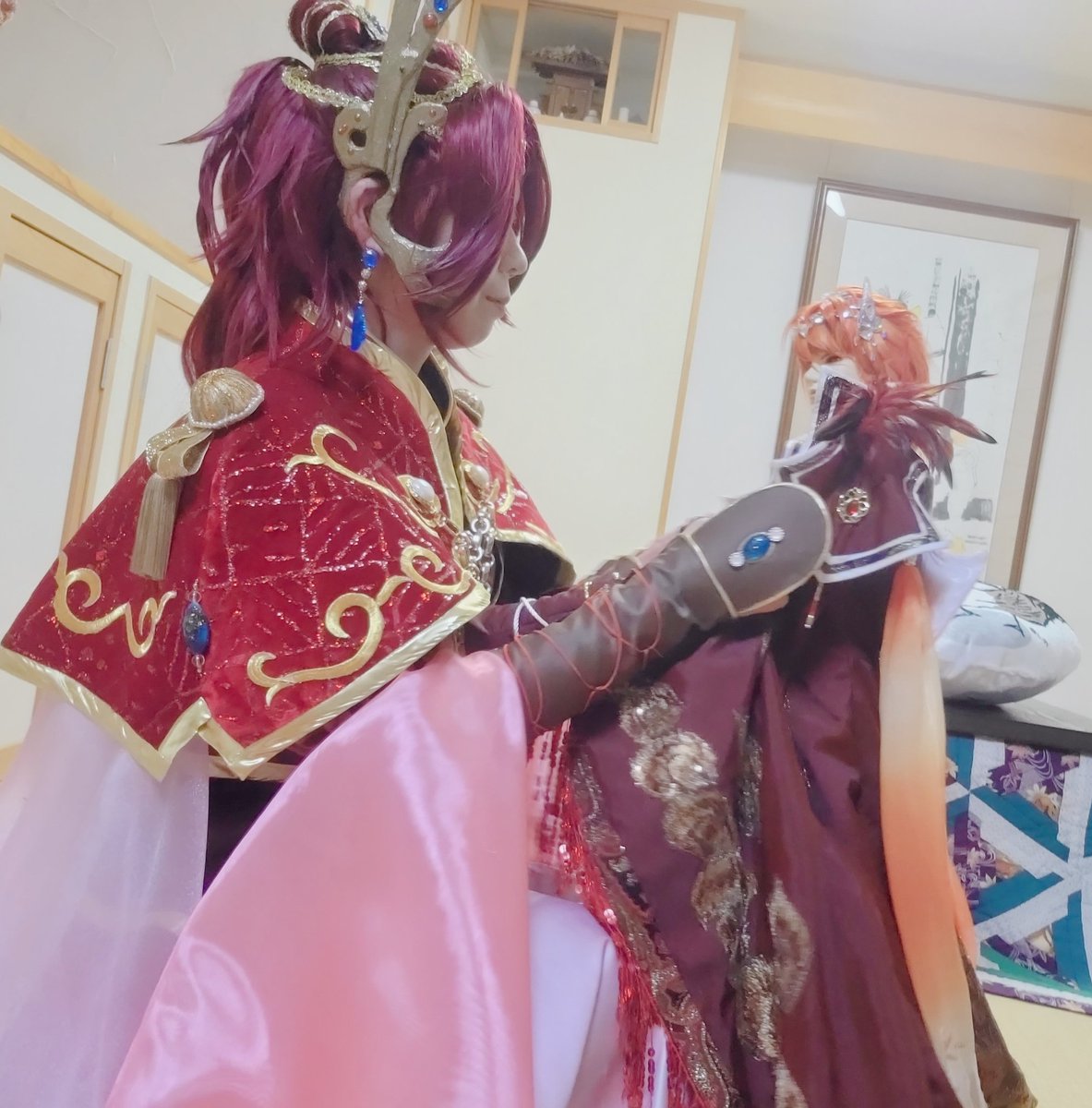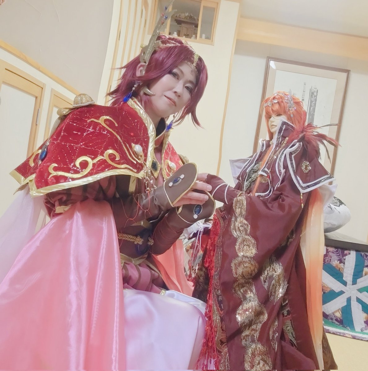 イラスト版のデザインが好きすぎて再現してみたものの、圧倒的に重厚感が足りぬ🤣併せに交ざれない…お蔵入り衣装😭 イラスト浪の脇~袖ラインと腰回りとの隙間 イラスト蔑のよき上司感 イラスト莫言の手篭めにされてない感 #サンファンキャラの衣装を実際に着てみてわかったこと