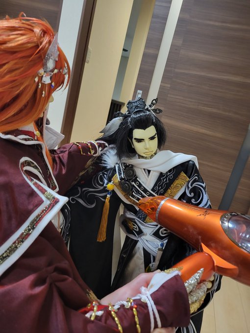 老天居酒屋店主と私とは「鴨の人」繋がりじゃないか、運命だと思って衣装作りました。 通常は…恐れ多くて布袋劇人形のコスが出来ぬ身… イラスト版を立体化するのは好き。 twitter.com/ext_lag/status…