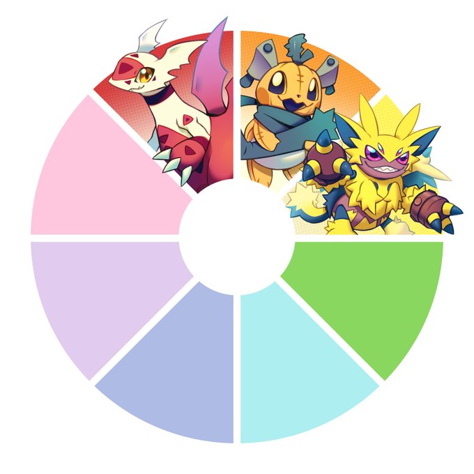 surprise! it's gonna be a combomon wheel! looking for orange digimon and pokemon suggestions next-- i'll pick out a couple that get multiple votes or look like fun to fuse 🧬 twitter.com/extyrannomon/s…
