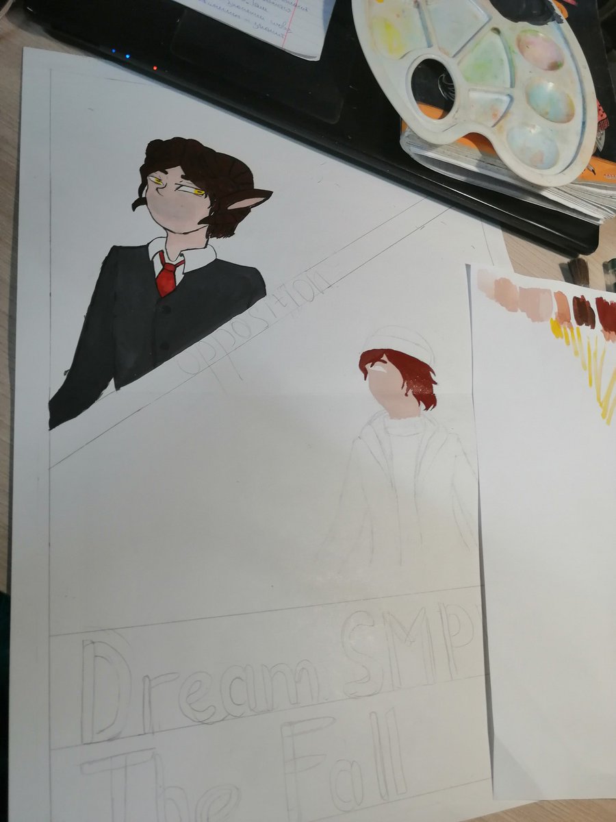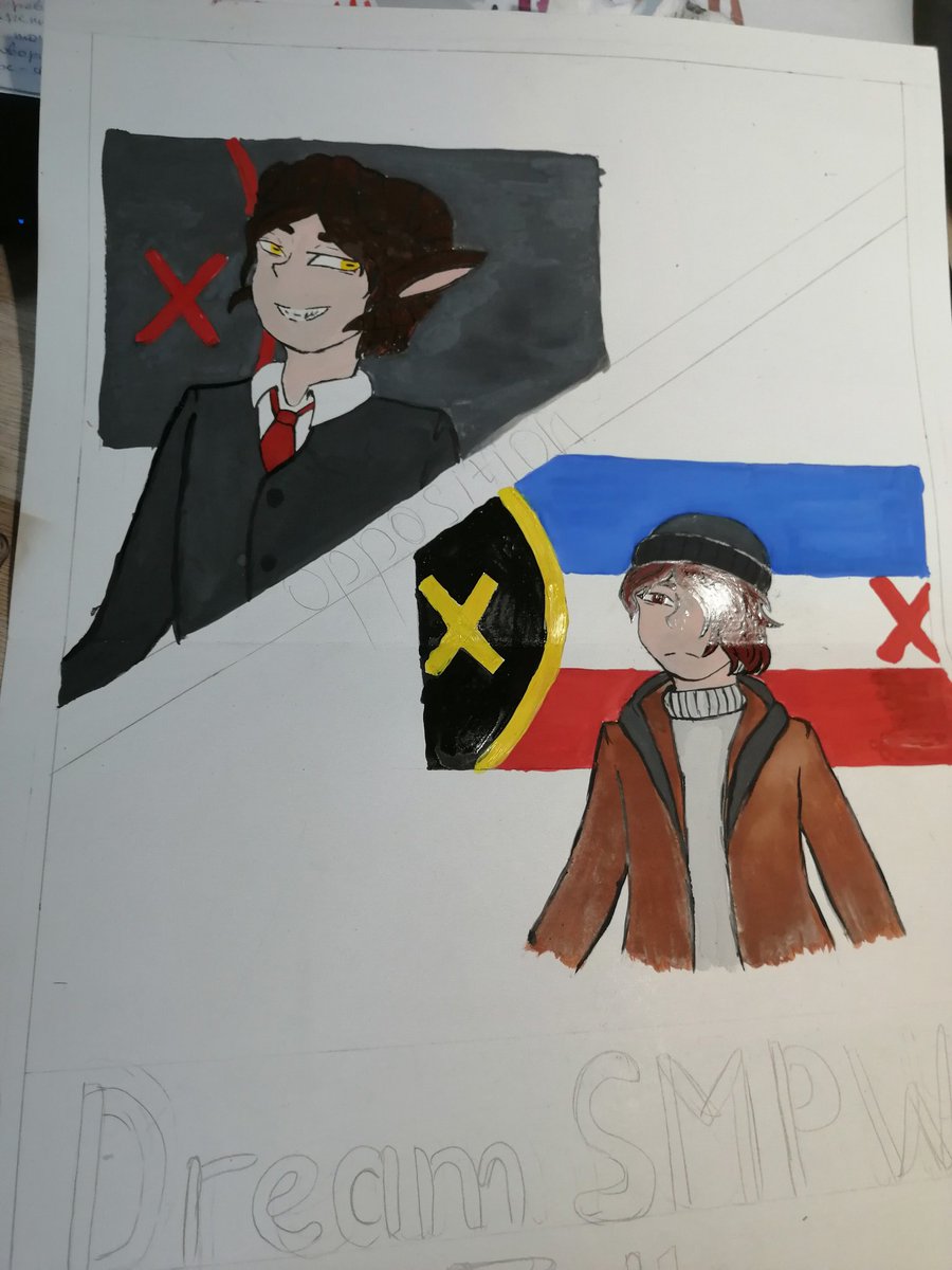 Я не очень умею рисовать красками, но эта работа получилась более менее похожа на мою задумку. #dreamsmpfanart #jschlattfanart #wilbursootfanart