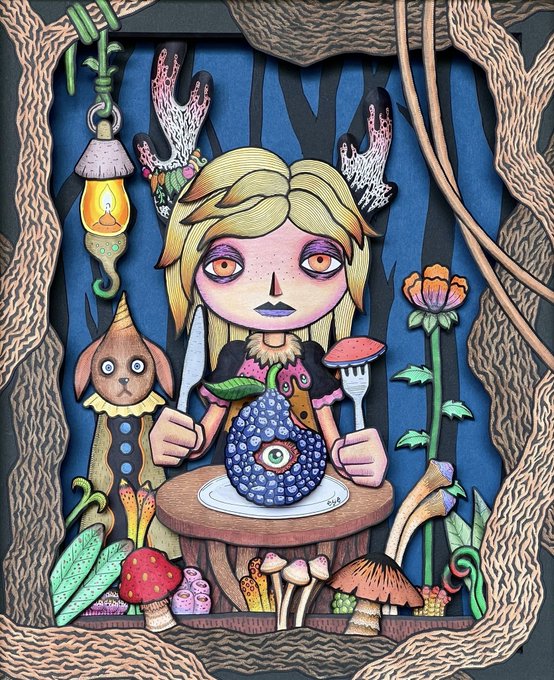 【固定用ツイート2023/2/1更新】 描いて切って組み立てる、シャドーボックス的半立体作品の作成をしています。