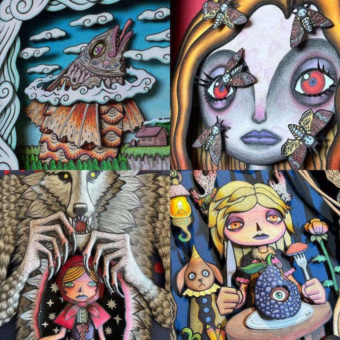 24 51 【固定用ツイート2023/2/1更新】 描いて切って組み立てる、シャドーボックス的半立体作品の作成をしています。 23/02/01 10:02