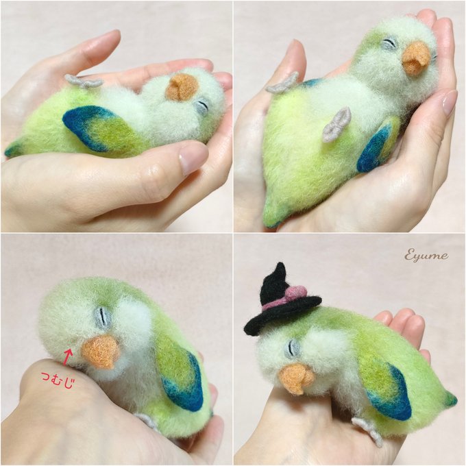 357 2486 コザクラインコ、生まれました✨ 寝てる子ですが、立たせてみたらなんだか楽しげな雰囲気に❤ #羊毛フェルト #インコ #コザクラインコ 22/07/27 22:08