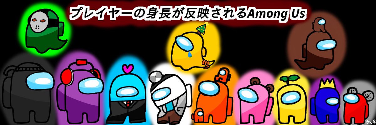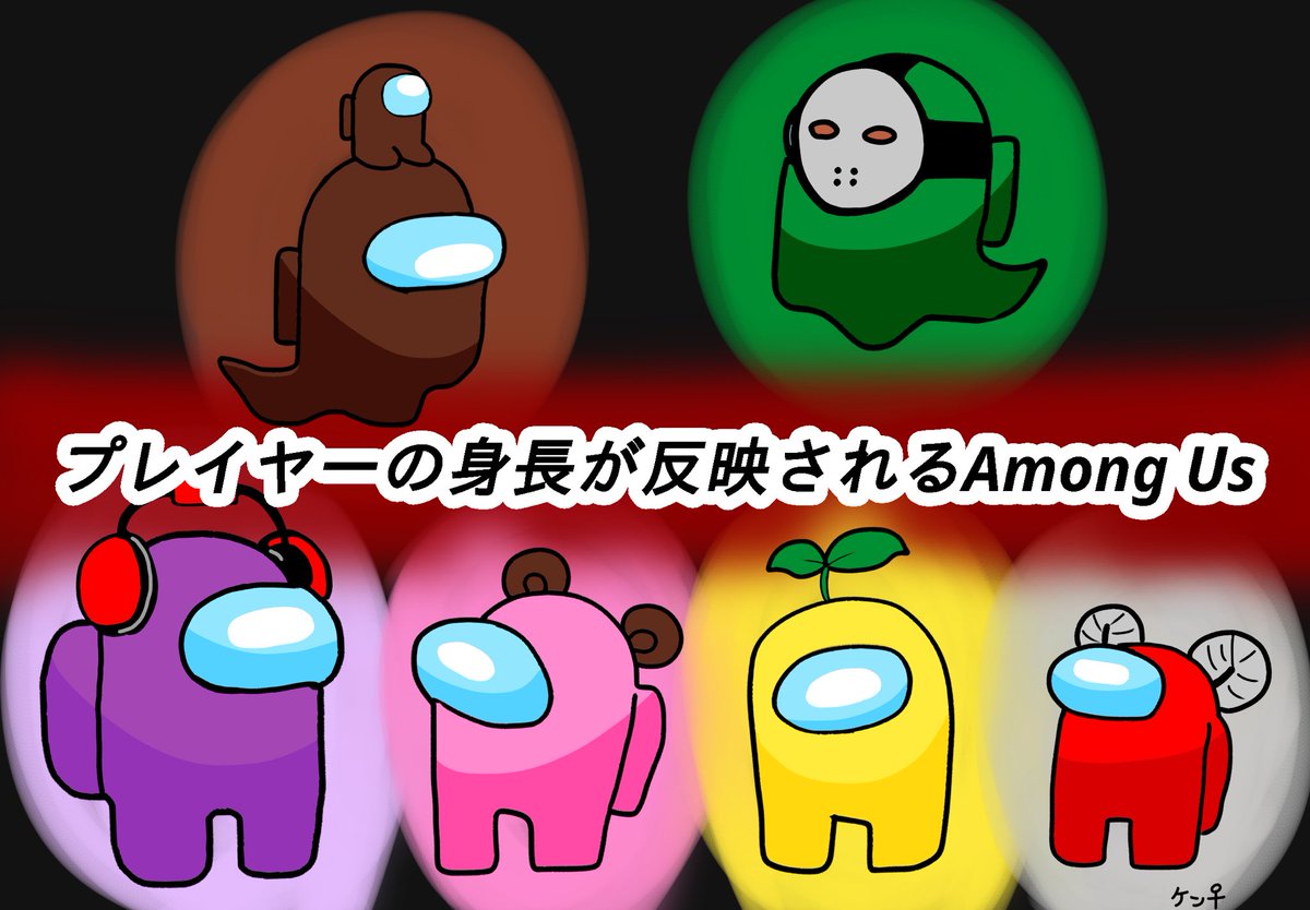 【プレイヤーの身長が反映されるAmong Us】 何となくこういうゲーム設定あったら面白いなってのを描いてみました 分からない2人は幽霊です 🤖さんのスキン色々あって悩みました… ※捏造 #bintrollFA