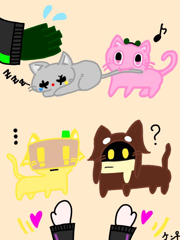 猫の日なので キャラっぽい猫ちゃんを描いてみましたがなんか微妙になりました‥ もっと上手く描きたい! じらいちゃんもっと可愛く描きたい‥ しるこさんとみんべんさんは飼い主です #bintrollFA