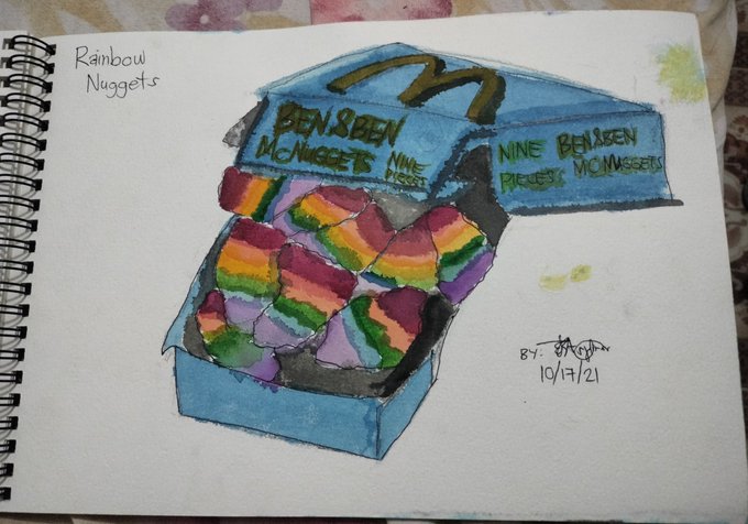 Pahabol 10/17/21 Day 3: "Rainbow" Rainbow nuggets 😂 #KuwaDoodles #inktober2021 @tonimoons @/jamnotwitter