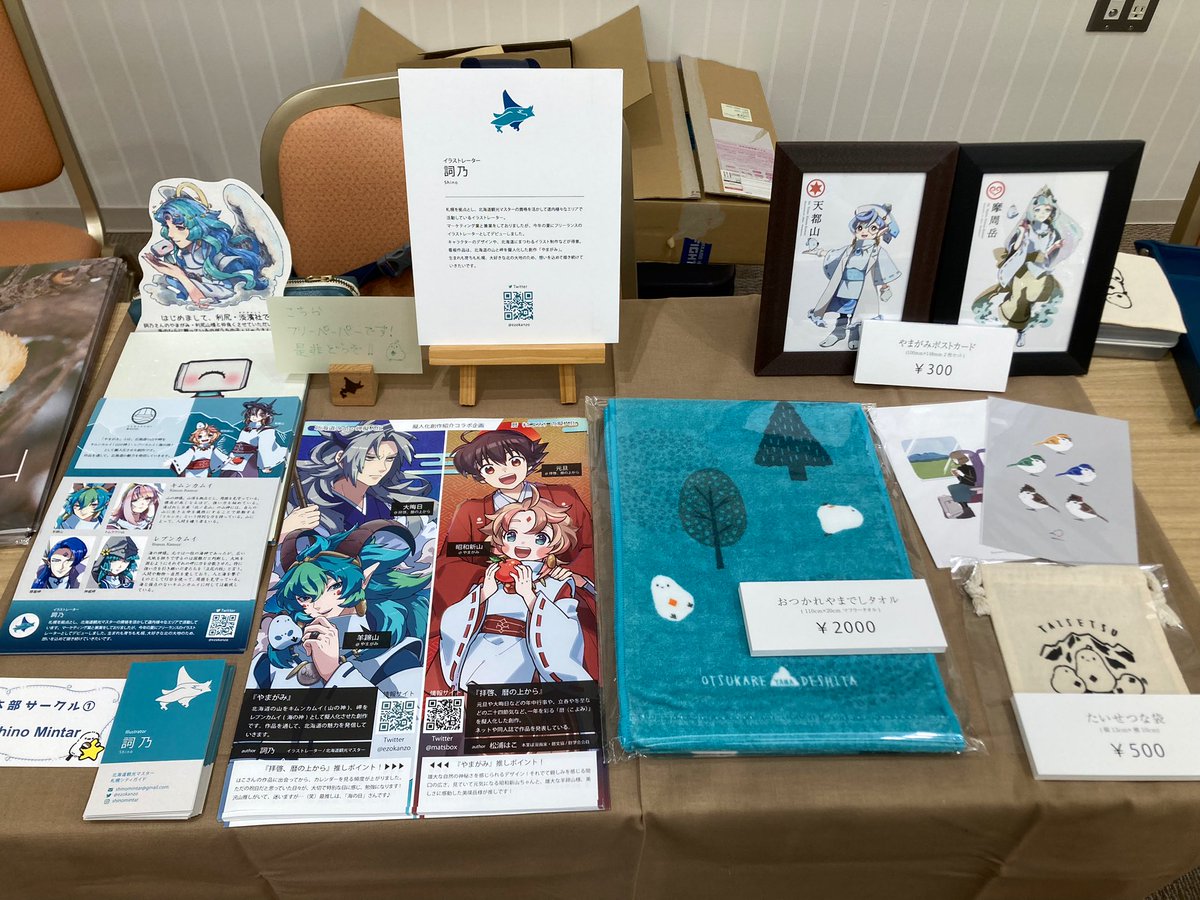 設営完了しました!!!!🏔️🏔️ 緊張して、おどおどしてたらすみません笑 はこさんの暦さんたちとのフリーペーパーや、利尻の淡濱社さんのフリーペーパーもご用意しております✨皆様のお越しをお待ちしております🙏🥰 #道ふろ2 twitter.com/ezokanzo/statu…
