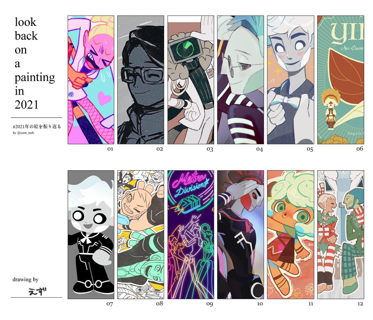 今年のお絵描きまとめです 振り返りテンプレを12か月分埋めるのが今年の目標だったので達成できて偉い! 久しぶりにイベント参加したり、ゲームに絵を載せていただいたり、NSRにどっぷりで楽しい一年でした🥰ありがとうございました皆様良いお年を~! #2021年の絵を振り返る