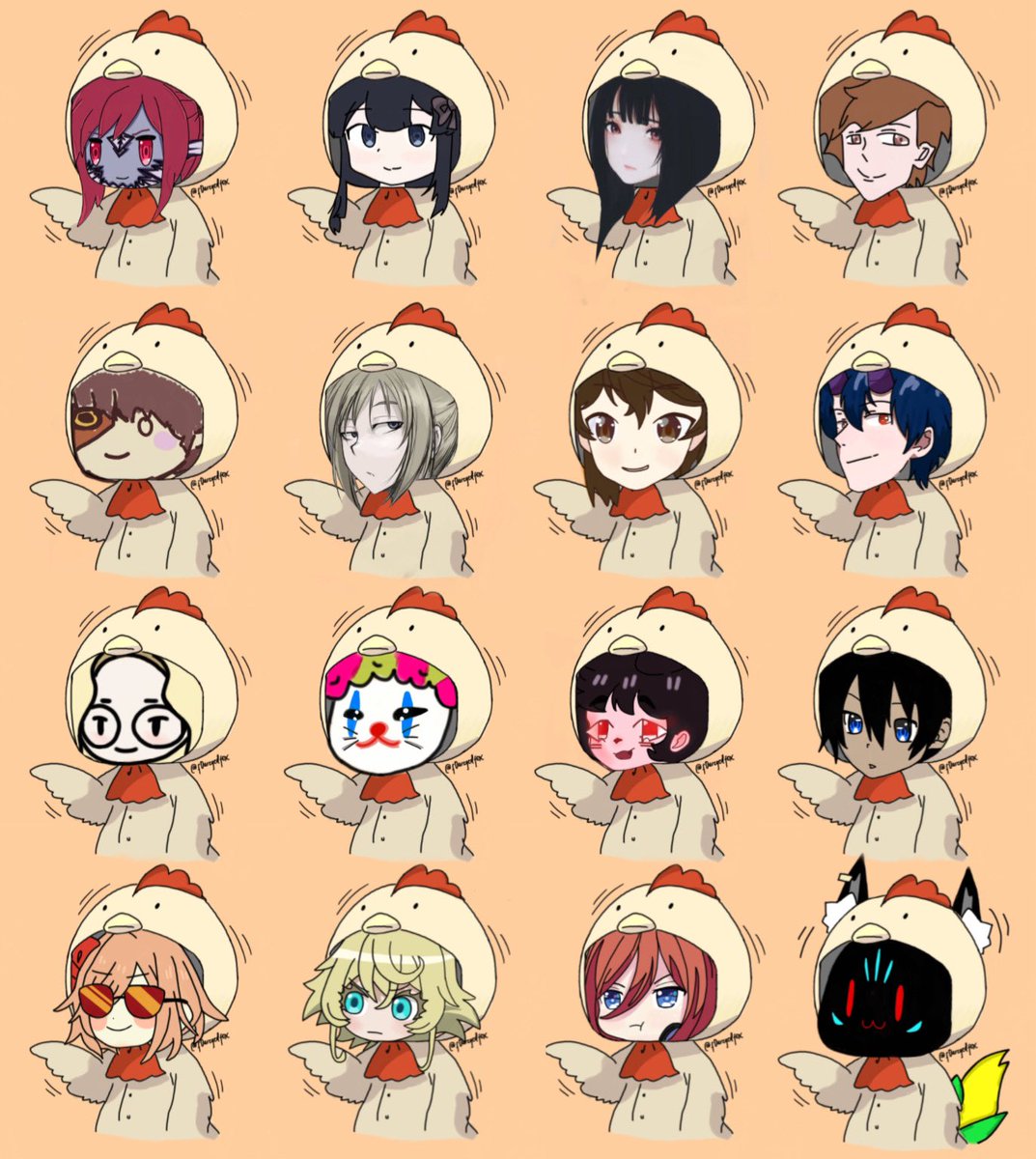 Happy anniversary, @takanashikiara from some of your #kfp employees 🐔🧡 We changed our icons to commemorate your anniversary. It has been such a wonderful year being your employees! P.S. I drew every single chimken! thank you, tenchou (シ_ _)シ #artsofashes #絵ニックス