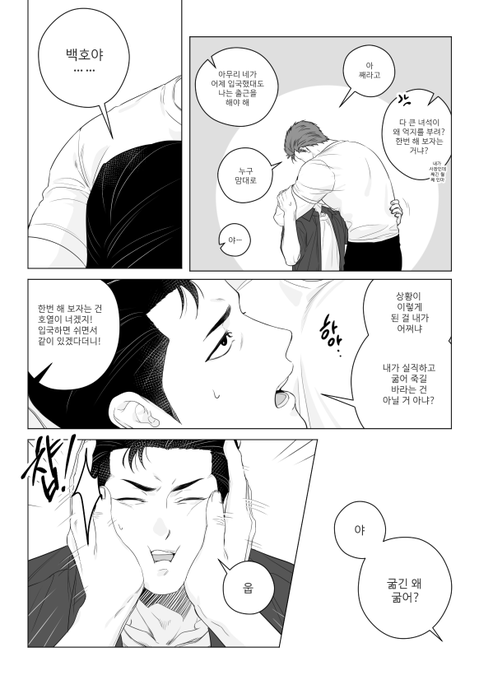 백호열백호 왁싱 이야기 주워 듣고 그렸어요 처음 밀고 온 ㅋㅋ 상황... 야한 건 없는데 죄다 헐벗고 있어서 포타에 올렸습니당 posty.pe/ewpyy4