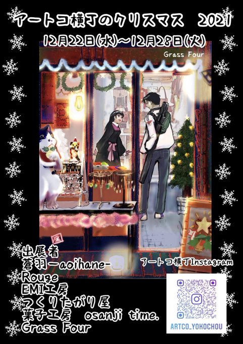 好きなハンドメイド作家さん達の出店フライヤー描かせていただきました。ふらっと立ち寄ると、日常に寄り添ってくれる、思いがけない特別に出逢えるかも。です。#アートコ横丁のクリスマス #GrassFour