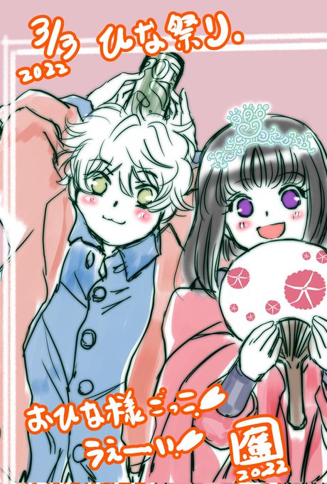 本日、桃の節句。ひな祭り。仕事帰りに好きな和菓子屋さんの限定饅頭買うのが、今日の生き甲斐。美味しいのよ。可愛いのよ。頑張ろ。#ひな祭り #桃の節句 #絵描きさんと繋がりたい #イラスト好きさんと繋がりたい #オリキャラカップル