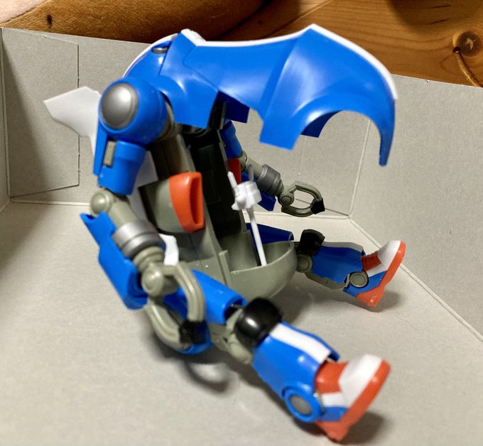昨日素組みしたメカトロウィーゴ実は後頭部のパーツがっつり突っかえるからコクピットハッチが途中まてしか開閉出来ん‼️って事でノーマルウィーゴみたいに完全オープン出来る様に削ろうと思います☝️ #メカトロウィーゴ