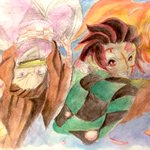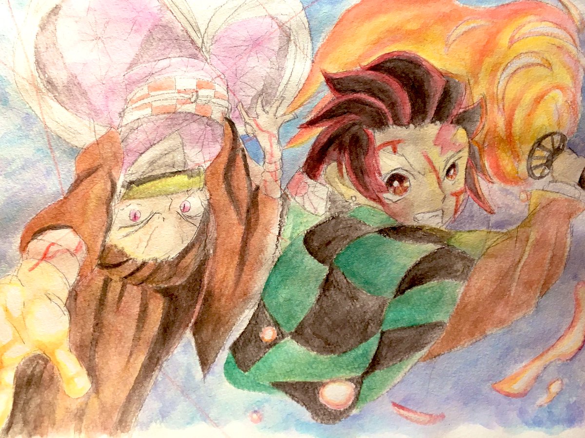 4 10 #鬼滅の刃絵描きさんと繋がりたい #鬼滅の刃イラスト #水彩色鉛筆 🎊㊗モンストコラボ!ヒノカミ神楽と爆血を描いてみました。 20/02/18 20:32
