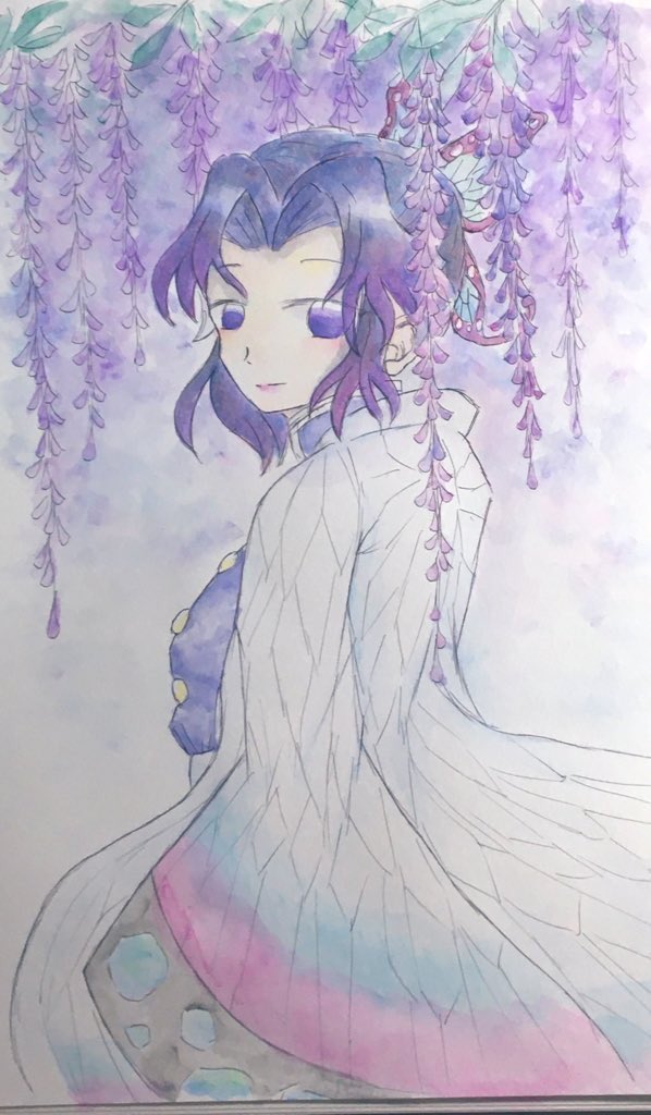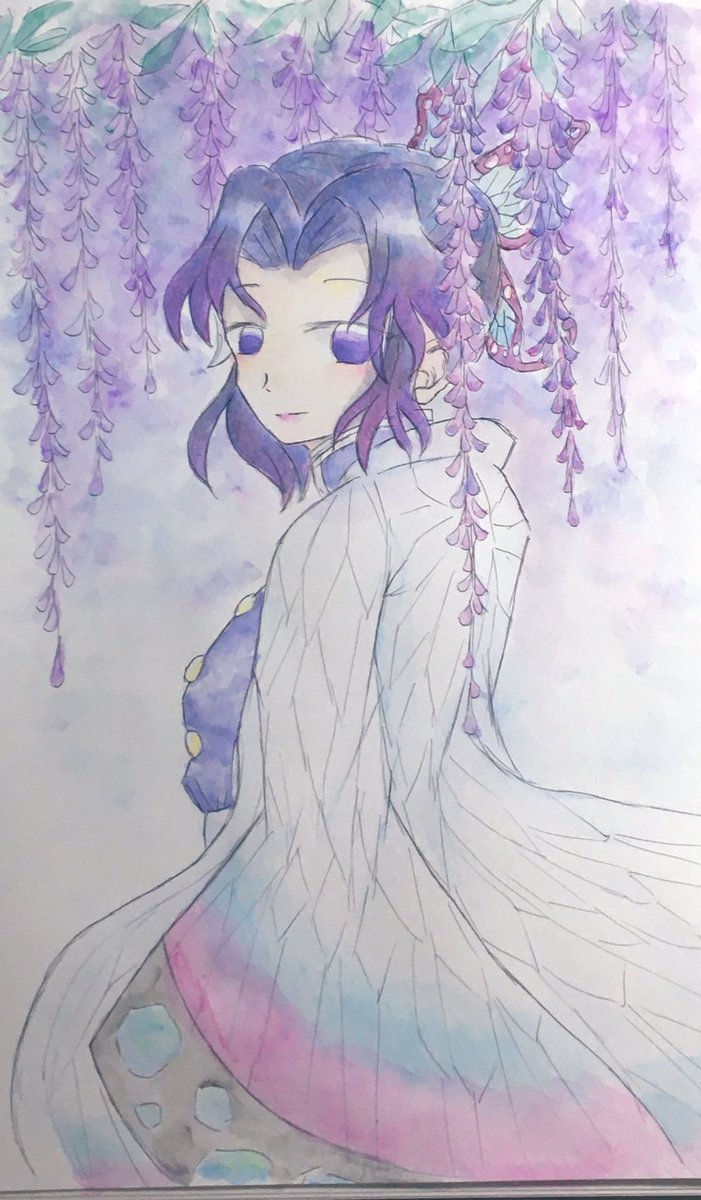 13 12 #鬼滅の刃絵描きさんと繋がりたい #絵描きさんと仲良くなりたい #胡蝶しのぶ 水彩+しのぶさん✨ 20/06/06 18:37