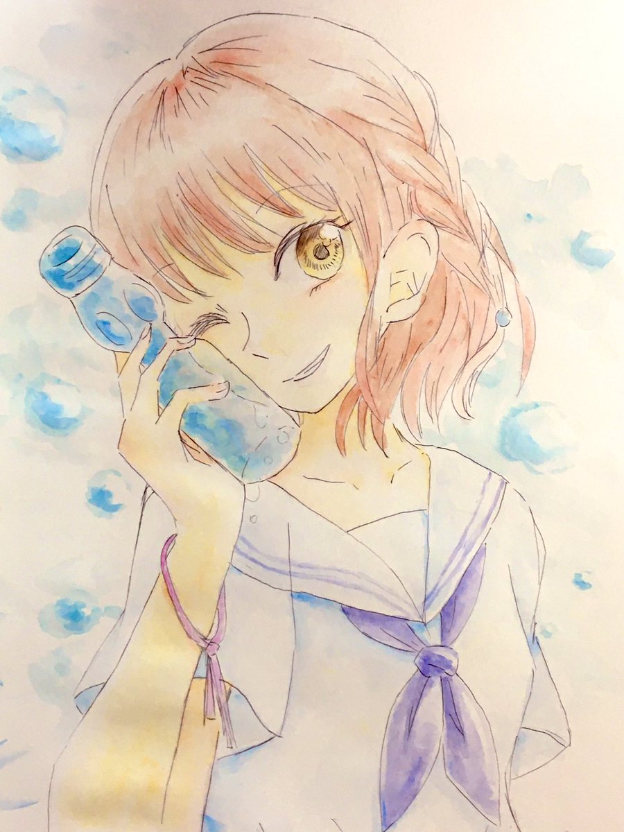 1 11 #水彩画 #イラスト好きさんと繋がりたい #夏 #セーラー服 夏に向けて!このアカウントオリジナルの絵を制作しました🚰🚰🚰 20/06/14 16:10