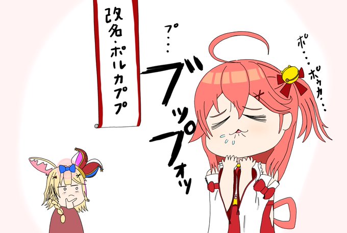 8 40 推しグッズを身につけるギャルポルカ しがみつく助手くんと座員はネタ方向で考えてた時の名残り 5期生要素も少しだけ 特等席は譲らん #絵まる #尾丸ポルカ新衣装予想 22/10/26 03:33