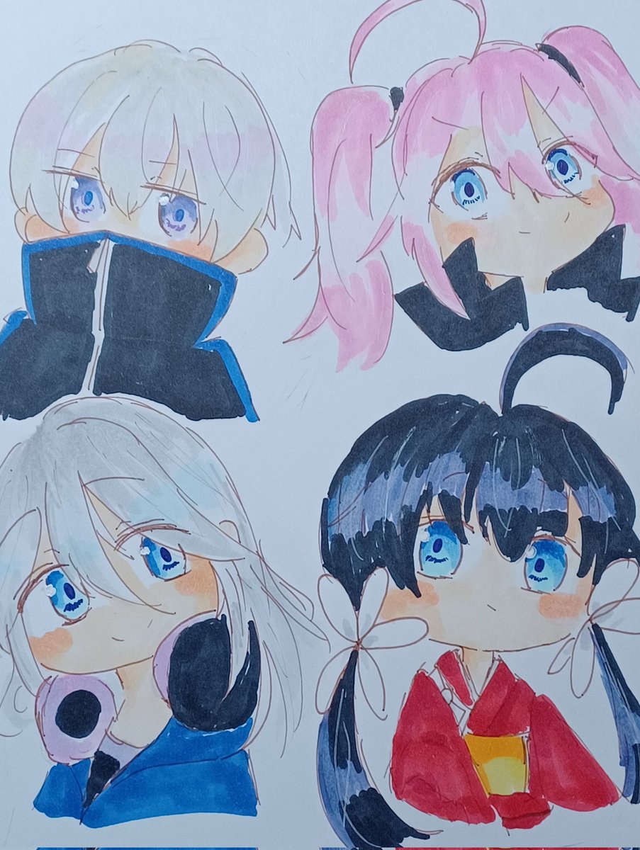 お待たせ致しました! なんか急なスランプでめちゃくちゃ下手くそなんですごめんなさい!! 画力が上がったら再挑戦したいですね...!! それぞれの個人絵欲しければご連絡を! #フォロワーさんの推しが描きたい