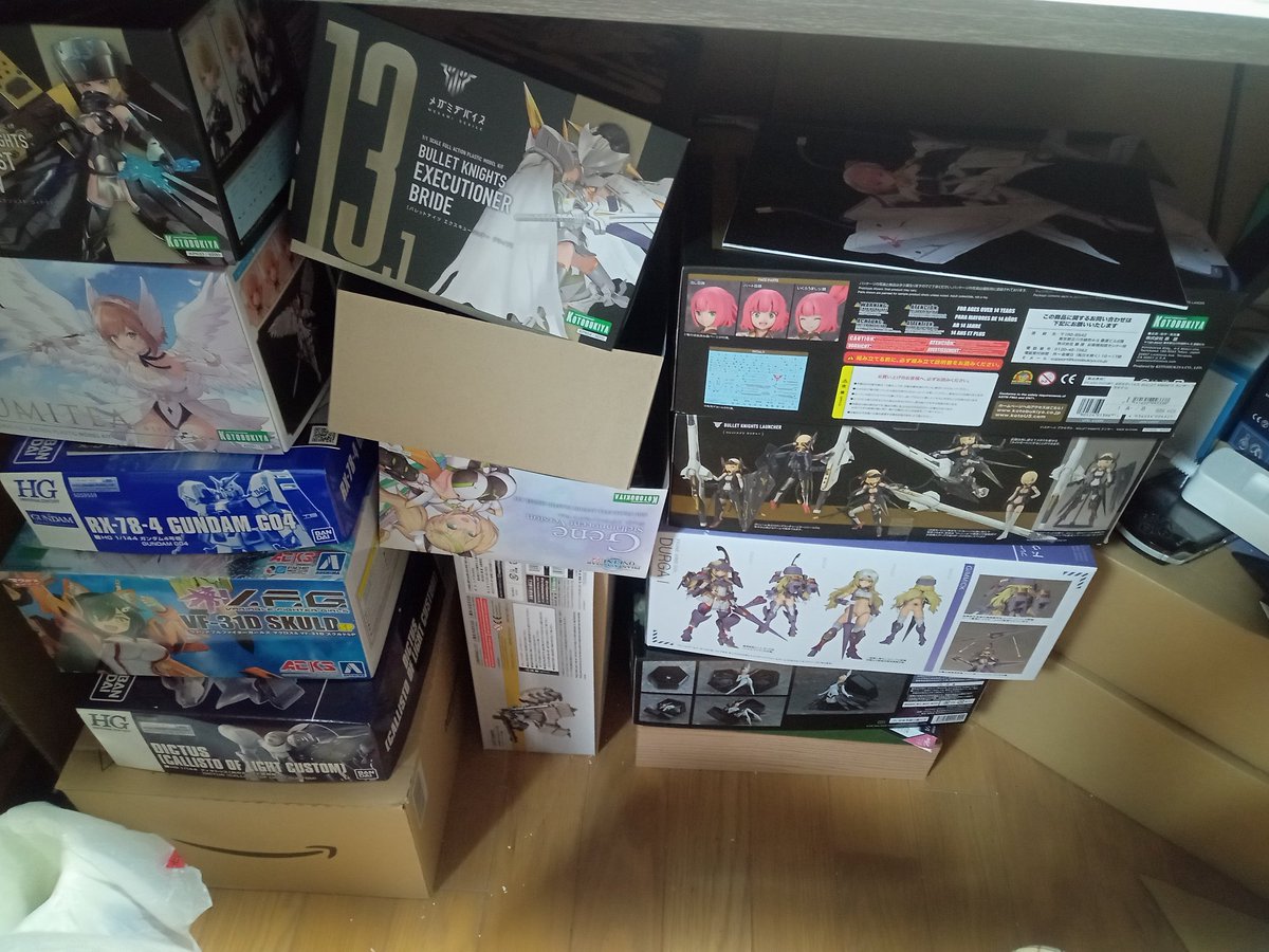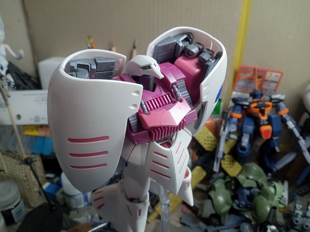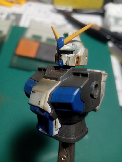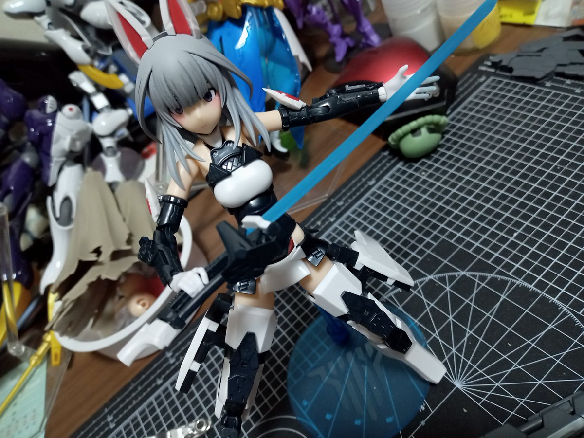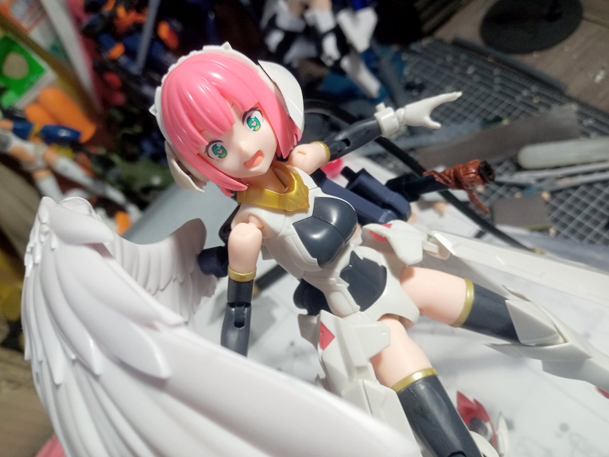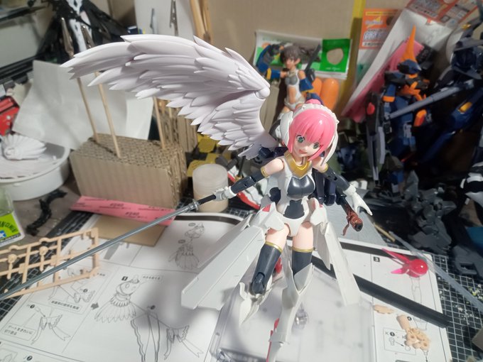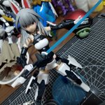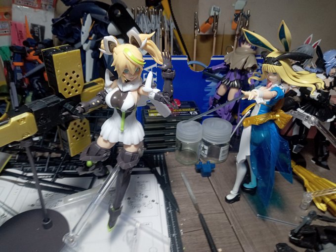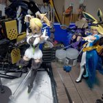#今月作ったプラモ晒そうぜ #ガンプラの画像貼るとRTされると聞いて #ガンプラ改造 イジったりで微妙な進捗 ハセガワの机は店で見て一目惚れw 埃が入るという失態、掃除大事 ドミちゃんはオマケw