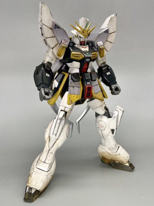 HGACサンドロック完成✨ 久しぶりのHG! ほぼ無改造の部分塗装です♪元の美しいイメージは残しながら汚したかったのですがどないでしょうか^_^ #ガンダムW #HG #ガンプラの画像を貼るとRTされると聞いて