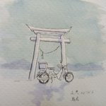 #15分シリーズ ツイートで見た写真を勝手に15分でスケッチしてみた。 第268弾 #鳥居 #スケッチ #イラスト #スーパーカブ #呉竹透明水彩