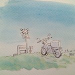 #15分シリーズ ツイートで見た写真を勝手に15分でスケッチしてみた。 第274弾 #釜無川ポケットパーク #スケッチ #イラスト #山梨県 #北杜市 #スーパーカブ #呉竹透明水彩