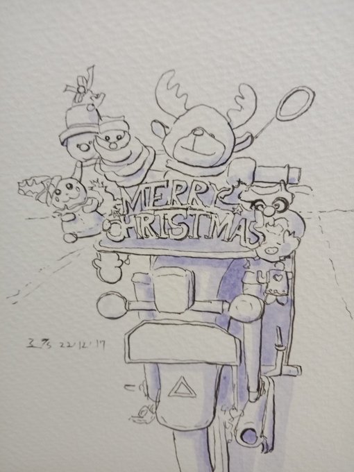 1 18 #15分シリーズ ツイートで見た写真を勝手に15分でスケッチしてみた。 メリクリ🎉🎉🎉 第280弾 #スーパカブ #スケッチ #イラスト #呉竹透明水彩 22/12/24 07:01