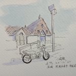 #15分シリーズ ツイートで見た写真を勝手に15分でスケッチしてみた 第322弾 #松本レンガ #スケッチ #イラスト #広島県 #竹原市 #スーパーカブ #クロスカブ #呉竹透明水彩