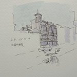 #15分シリーズ ツイートで見た写真を勝手に15分でスケッチしてみた 第328弾 #名古屋市市政資料館 #スケッチ #イラスト #愛知県 #名古屋市 #呉竹透明水彩