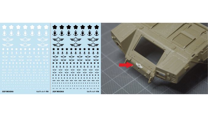 #ワンフェス2020冬 にて #デカール 販売します 自衛隊標識 自衛隊車両の前面中央に表示されている標識です 陸海空の桜マークを各スケールでセットにしました landinggear.web.fc2.com/jsdf-insignia.… #陸上自衛隊 #JGSDF #JASDF #JMSDF #航空自衛隊 #海上自衛隊 #戦車 #装甲車 #wf2020w #ワンダーフェスティバル