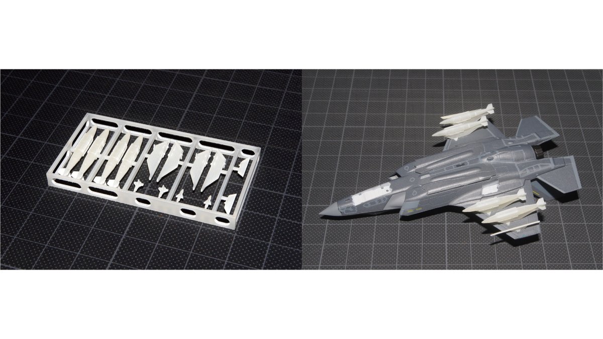 #ワンフェス2022夏 にて3Dプリントキット販売します 1/144 F-35 ビーストモード・パーツ#1 #F35 のパイロンと爆弾、ミサイルをセットにした3Dプリンタ造形アクリル製のパーツです ↓詳細はこちら landinggear.web.fc2.com/f35-beast.html #144スケモ #144scale #USAF #JASDF #wf2022s #ワンダーフェスティバル