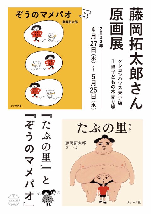 本日より、東京・表参道のクレヨンハウスさんにて『たぷの里』と『ぞうのマメパオ』の原画展が始まりました! 4/27(水) - 5/25(水) crayonhouse.co.jp/shop/pg/1tk03-…