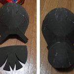 2 17 んで、ウツシ教官のお面のとても大事な部位、角をコスプレボード切って作ります。 最初ペラペラだけど、適度に切れ目入れて角度をつければかなりそれっぽくなる。3枚のパーツを組み合わせて立体的にするー #造形 #造形レイヤー #コスプレ 21/09/25 19:26