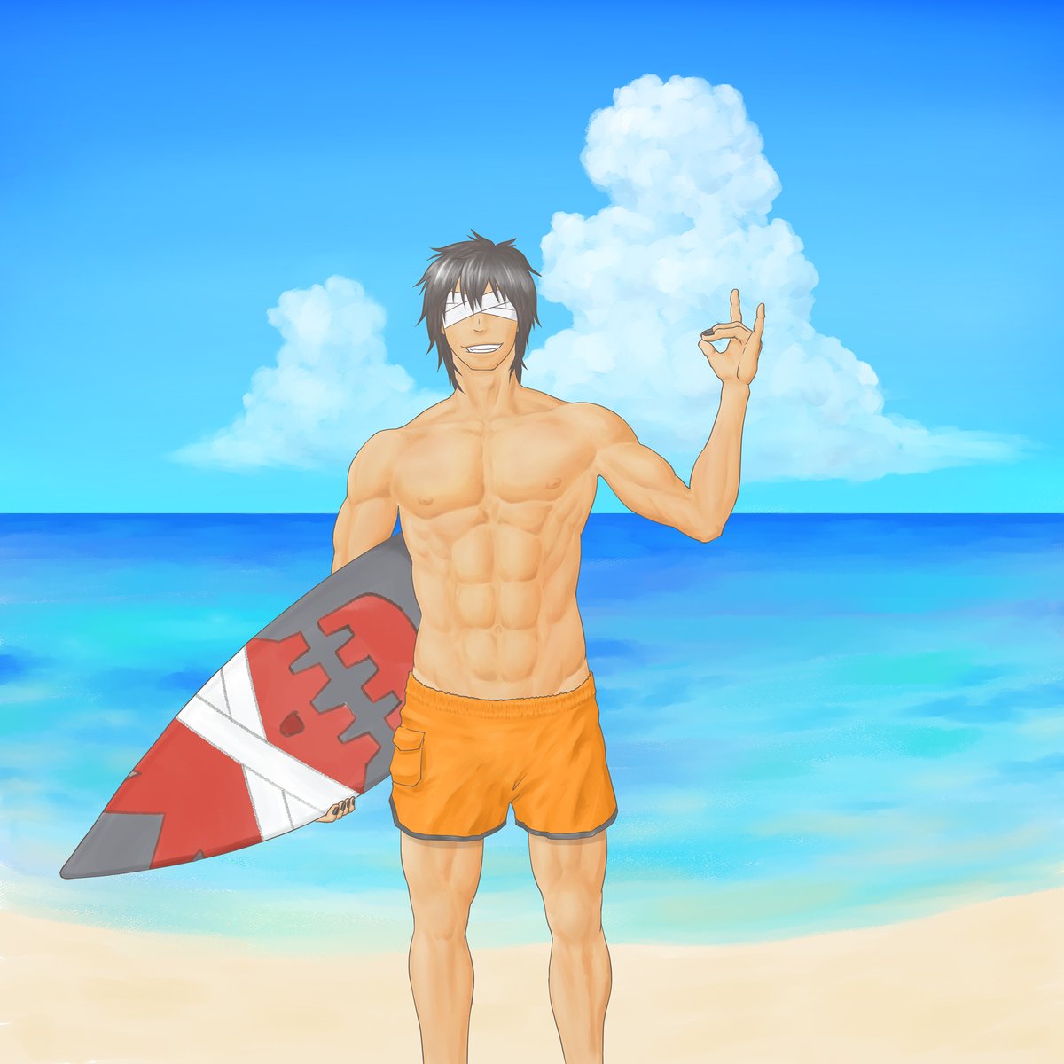 夏真っ盛りなので!昔描いた夏らしいサーファー震路イラスト投下する!!
