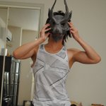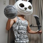 ウツシ教官のジンオウガのお面、サイズ的にはこんな感じ。ど、どうでしょう?! サイズ的には多分イイ感じだと思うw #造形 #造形レイヤー #コスプレ