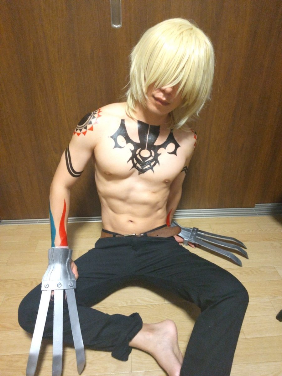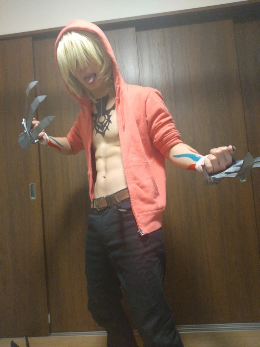 咎狗の血 グンジのコスプレ 背中、あとヒャッハーってしてそうなのww うん、グンジのタトゥーシール一人では貼れないからマジで要介護www #コスプレ