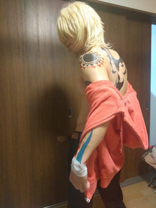 2 15 咎狗の血 グンジのコスプレ 背中、あとヒャッハーってしてそうなのww うん、グンジのタトゥーシール一人では貼れないからマジで要介護www #コスプレ 22/02/19 20:47