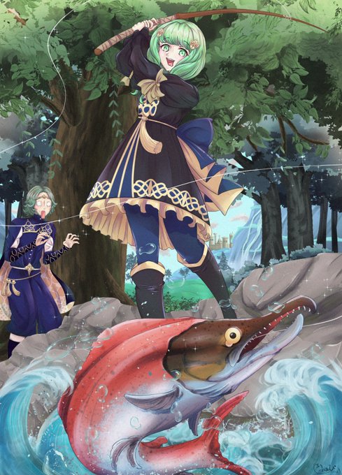 「父娘で釣り」 "Father and daughter fishing" #ファンアート #ファイアーエムブレム風花雪月 #fe風花雪月 #フレン #セテス #ファイアーエムブレム #fethreehouses #fireemblemthreehouses #fireemblem #digitaldrawing #digitalart #fanart