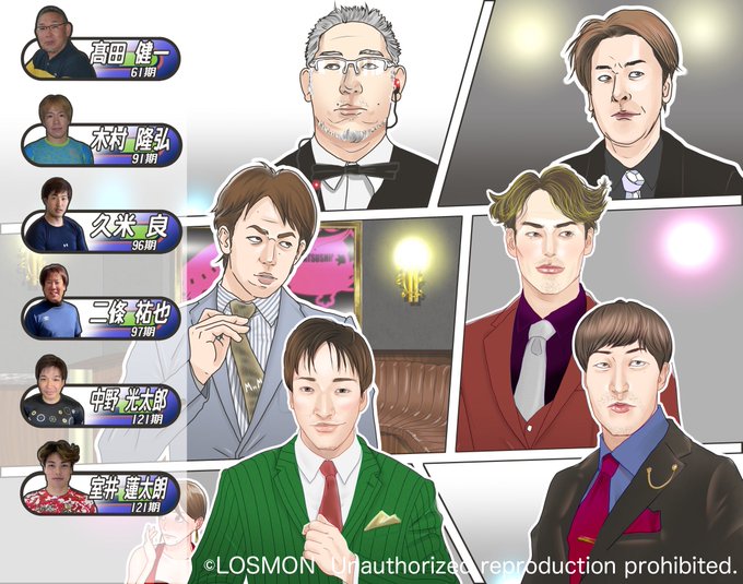 徳島支部カレンダーの1月。 コンセプトはホストクラブ✨ 普段はファイトクラブな面々ですが煌びやかなスーツで描いてみました! サッカーをバックボーンに持つ二條選手や愛猫家の木村選手にはちなんだネクタイをこっそりあしらっています😊 #小松島アウトレイジ #徳島支部カレンダー