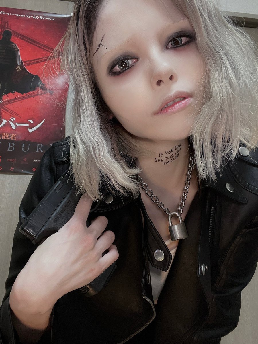 ガンズアキンボ / ニックス メイク練習。これからもっとちゃんと衣装作ったり銃の塗装したり(※旦那が)します! ニックスは最強で頭おかしくて可愛い🖤 #GUNSAKIMBO #ガンズアキンボ