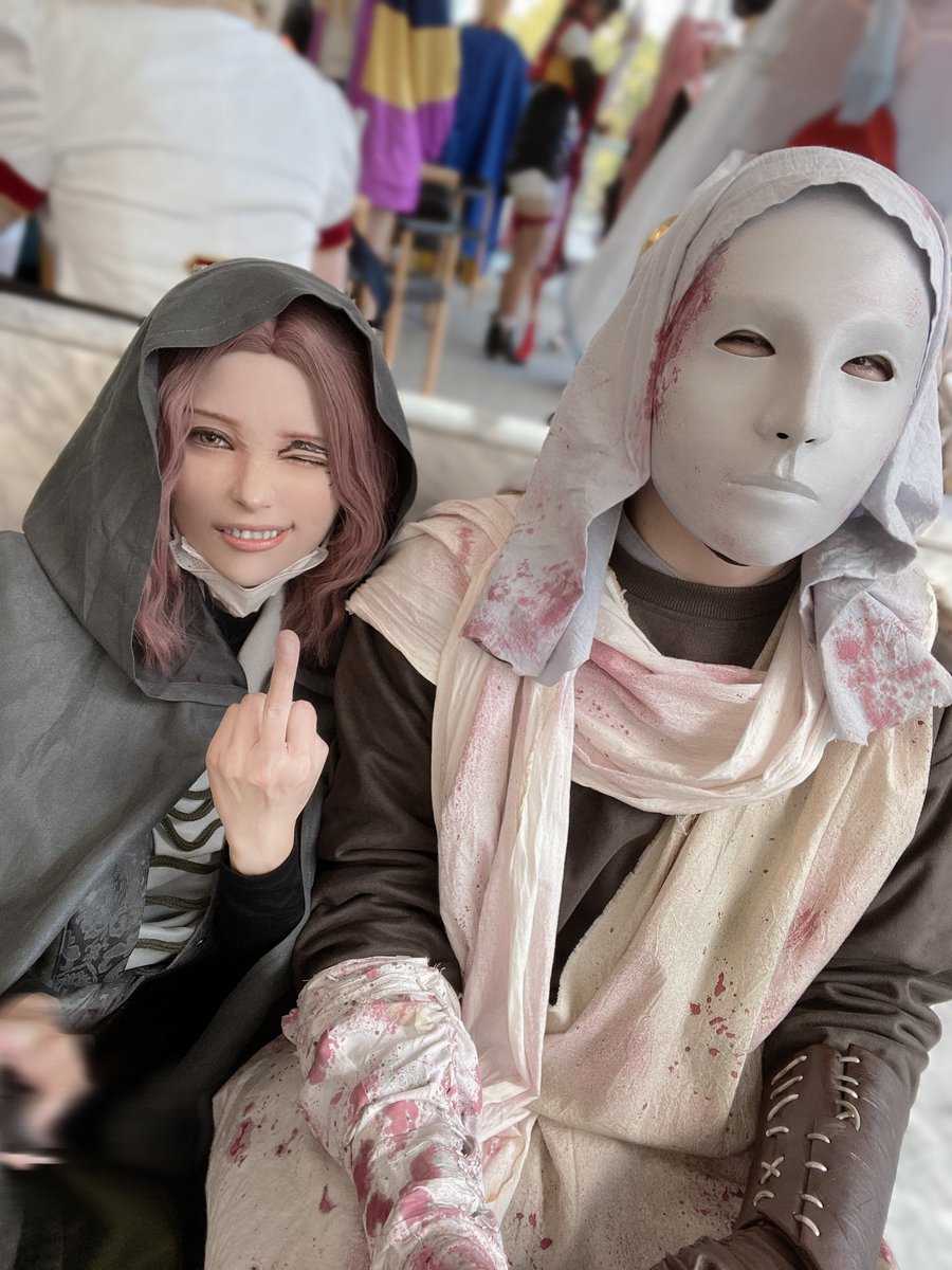 輝さんとツーショ撮れました🖤🖤 リアルクリフでした…👏✨ クリフ▶︎ 輝さん @from_Mrj CHVRCHES▶︎ 我 #C97 #デススト #C97コスプレ #デスストでつながれ #CHVRCHES #冬コミ #コスプレ #DeathStranding