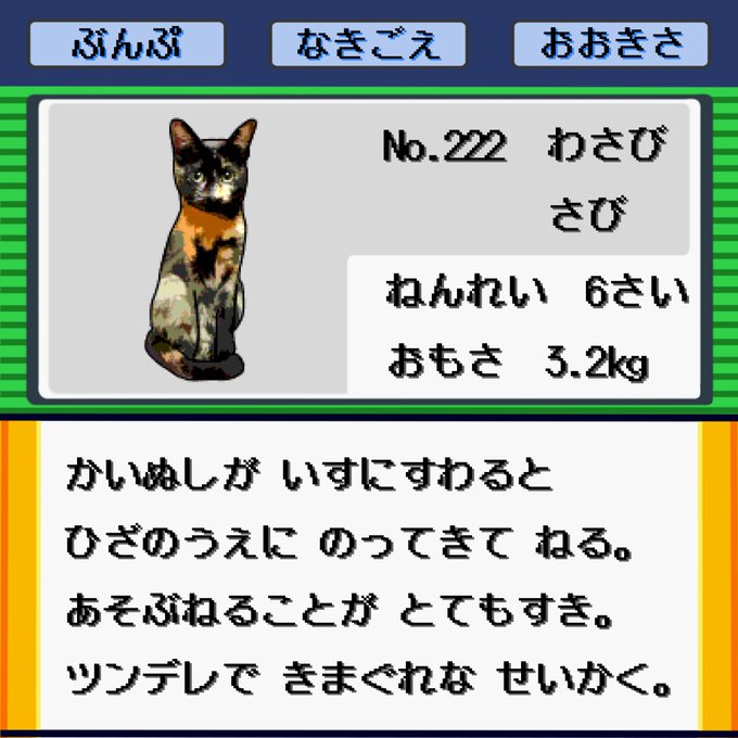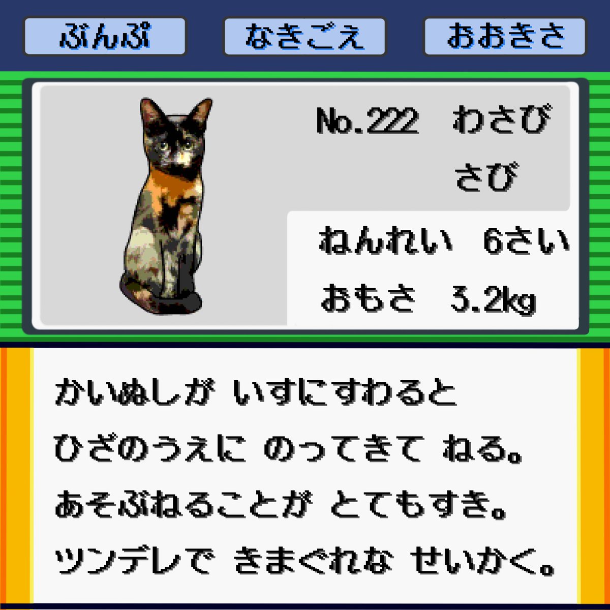 0 11 やったー! わさびを つかまえたぞ! @ayanosuke01 さんちのわさびちゃん #ねこ #デザイン #ドット絵 twitter.com/fac_l_offici… 22/09/02 09:02