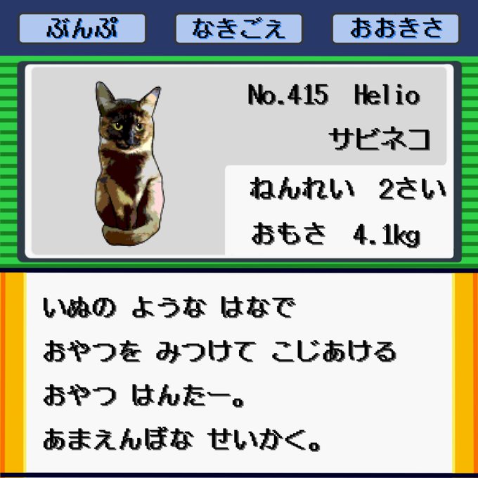 0 16 やったー! Helio を つかまえたぞ! @0_0tama0_0 さんちのHelio ちゃん #ねこ #デザイン #ドット絵 twitter.com/fac_l_offici… 22/09/18 17:16