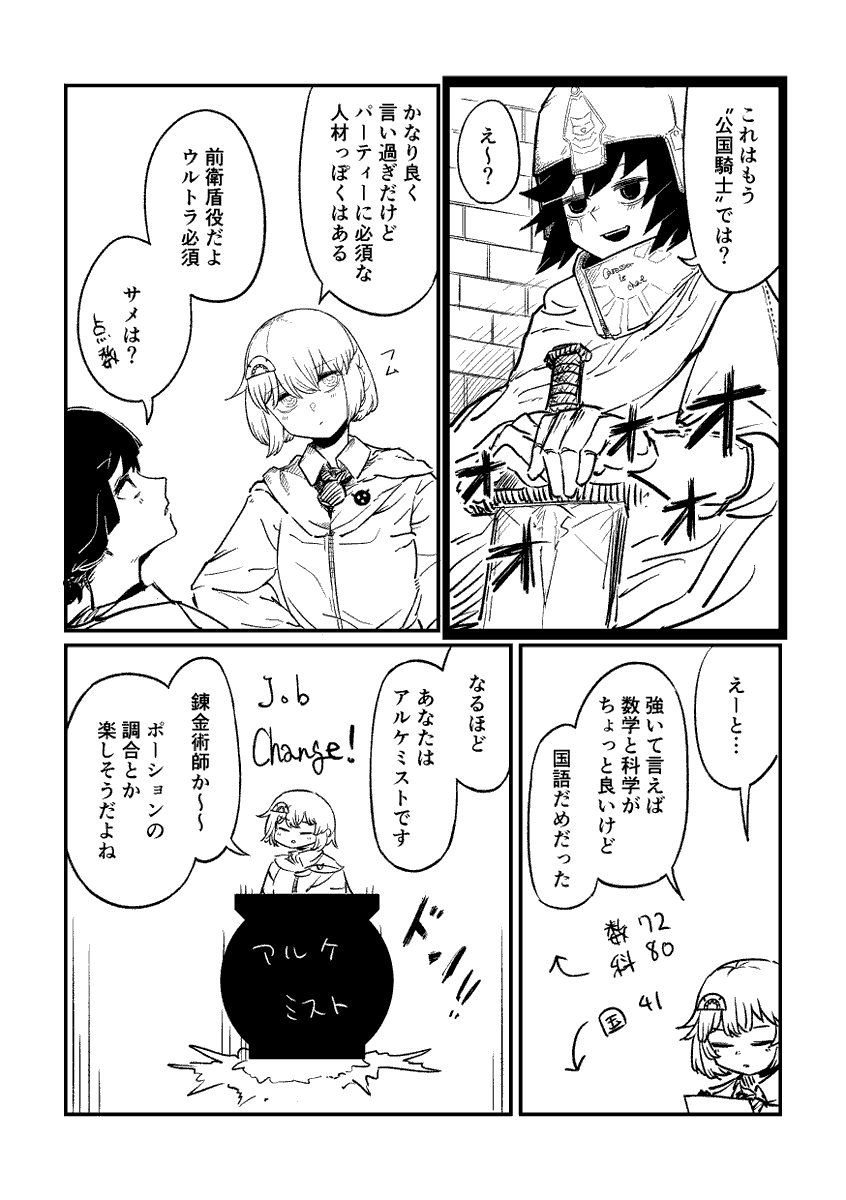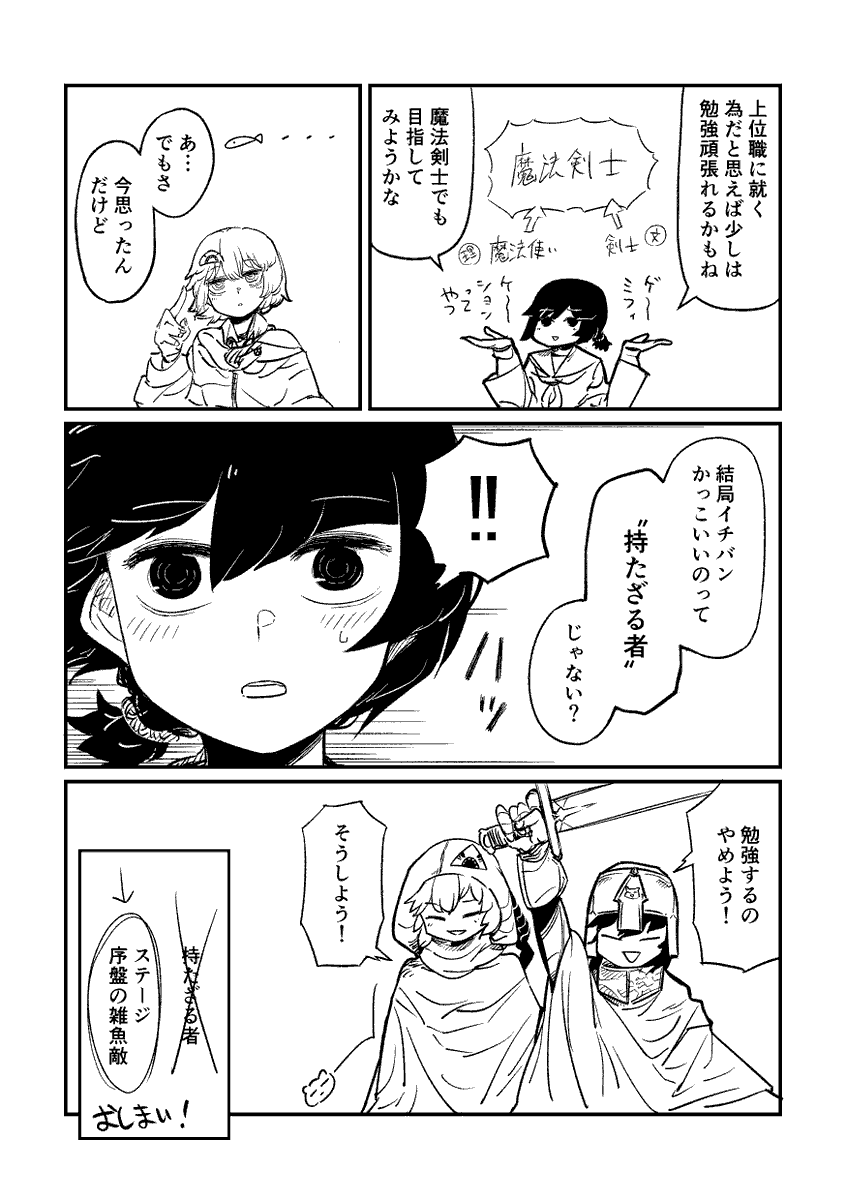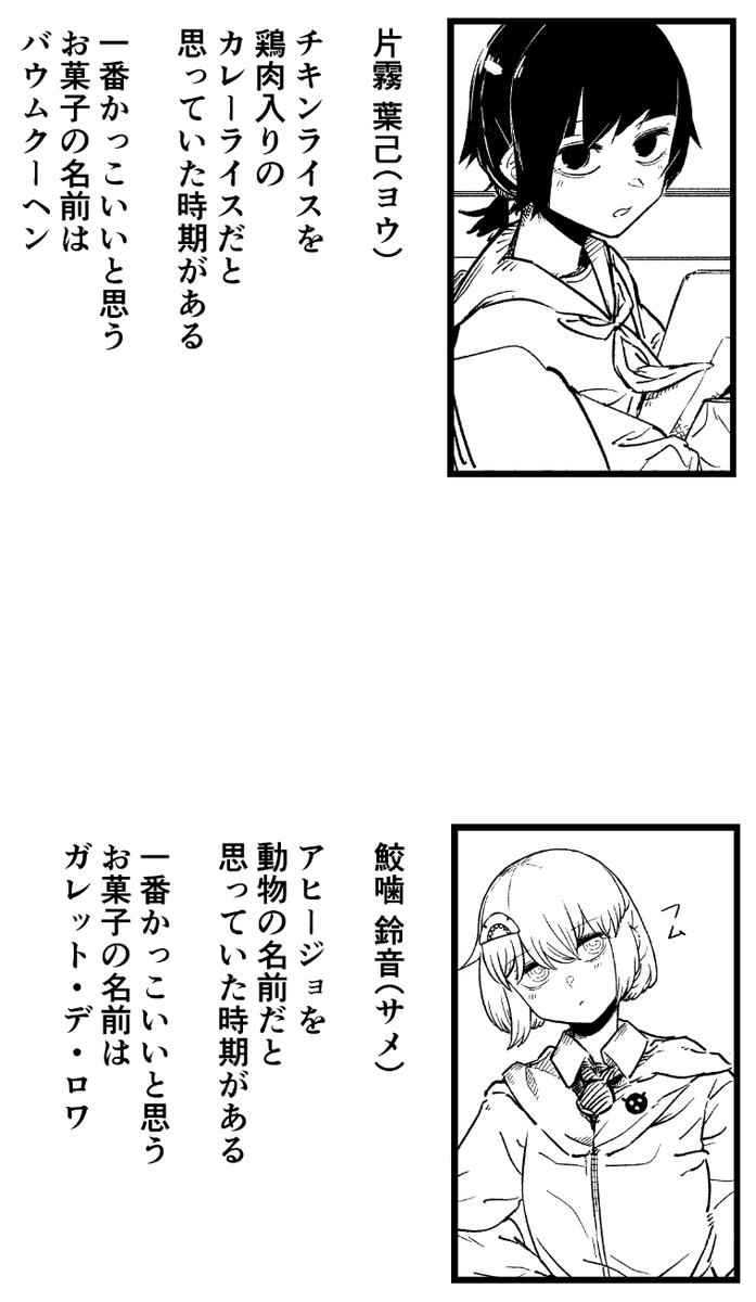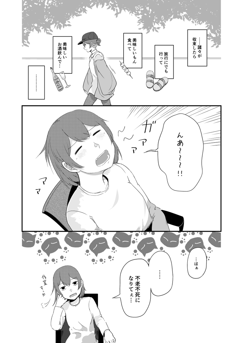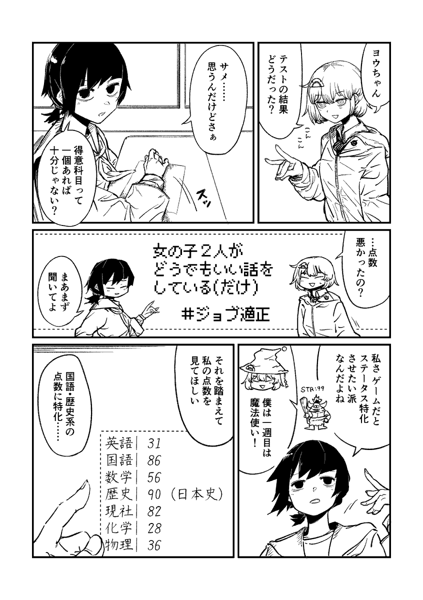 27日のティアに出す「女の子2人がどうでもいい話をしている」という本です 漫画部分わずか4pとちょっと諸々あるだけのめっちゃ薄い本です。どうでもよさの質としては以下のような感じです。多分ちょっとしか刷らない!よろしく!!!!