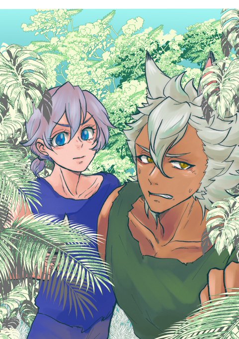 #エペジャクワンドロワンライ +30分です。 「無人島」お借りいたしました!!! エペジャクちゃんの無人島生活を色々考えてたんですが空回り過ぎてただジャングルを彷徨ってる二人になってしまいました😂