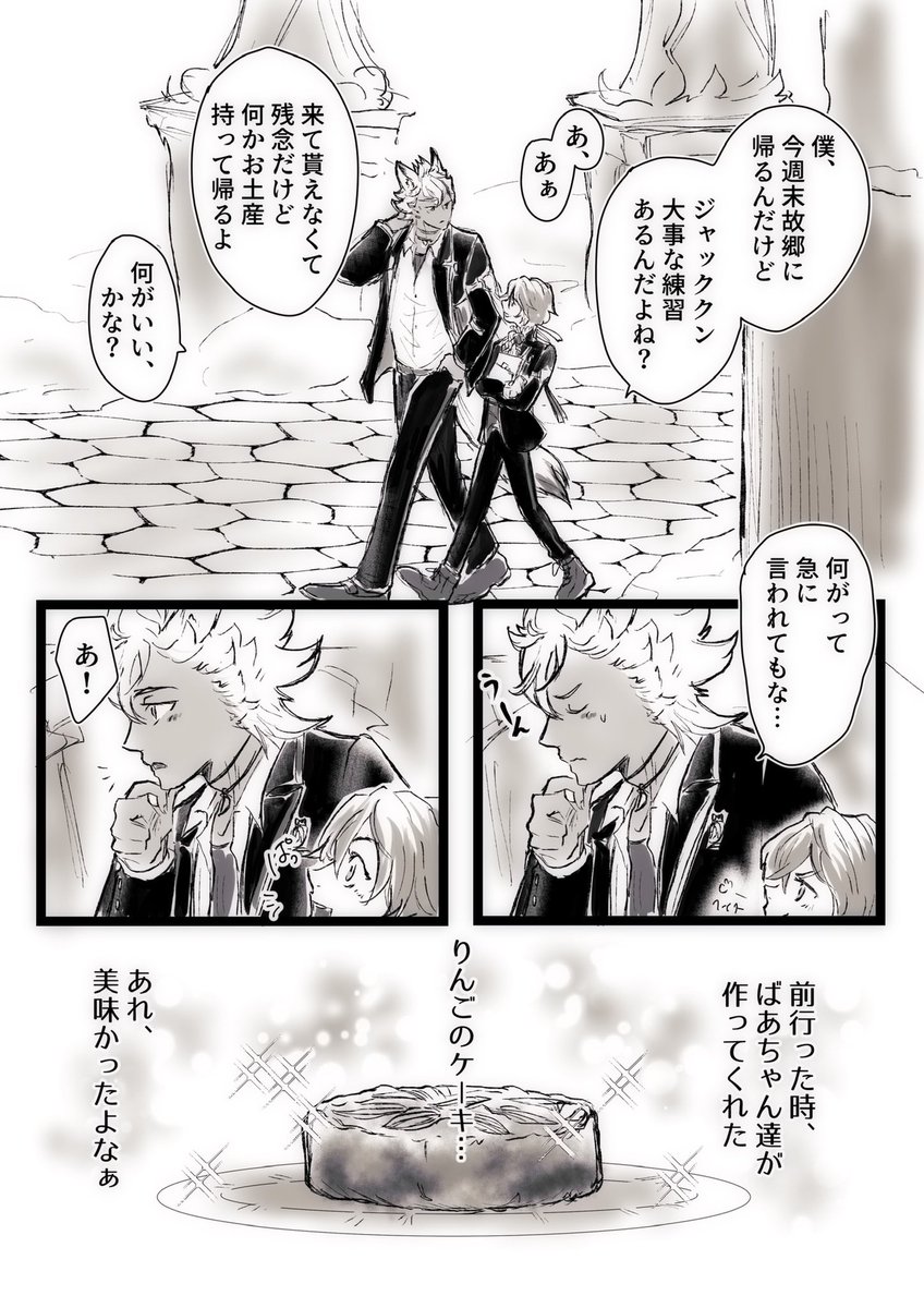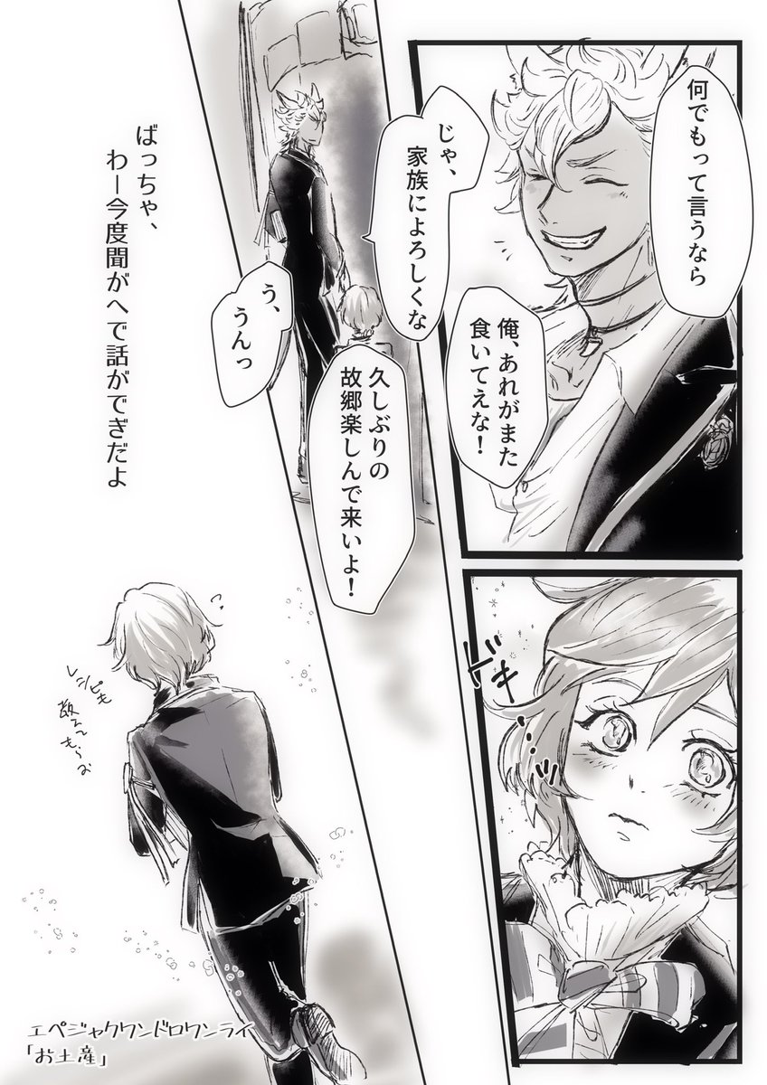 #エペジャクワンドロワンライ 完全に遅刻かつオーバーで申し訳ありません😭久し振りに参加させて頂きたく、お題「お土産」お借りしましたー! まだ恋を自覚する前からエペジャクちゃんたちを見守るほ〜さく村のオバチャンになりたい😊